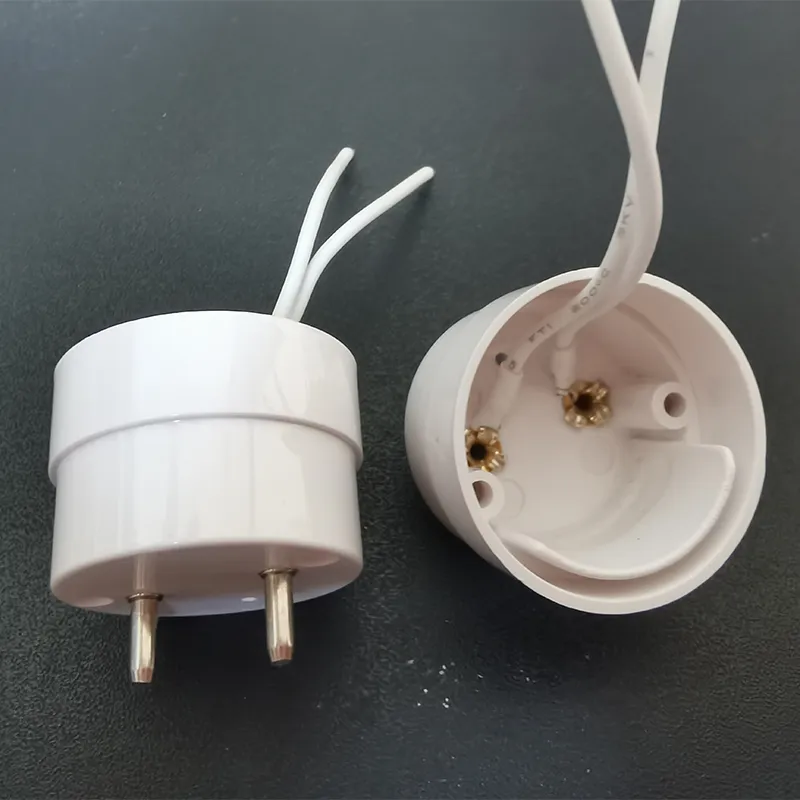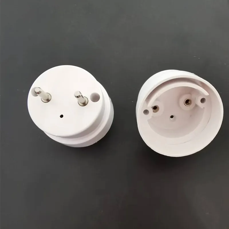 ఇది మా కంపెనీ యొక్క సాంప్రదాయిక T8 G13 ఎండ్ క్యాప్. G13 ఎండ్ క్యాప్ ఎండ్ క్యాప్ను రెండు పిన్లతో సూచిస్తుంది, ఇది ట్యూబ్ యొక్క రెండు చివర్లలో 13 మిమీ మధ్య దూరంతో ఉంటుంది. LED T8 గొట్టాల కోసం G13 ఎండ్ క్యాప్స్ను ఉపయోగించడం యొక్క ముఖ్య ఉద్దేశ్యం సాంప్రదాయ ఫ్లోరోసెంట్ దీపాలు T8 కోసం రూపొందించిన ఇప్పటికే ఉన్న దీపం హోల్డర్లు (దీపం ఫిక్చర్స్) తో శారీరకంగా అనుకూలంగా ఉండాలి. పాత ఫ్లోరోసెంట్ లాంప్ హోల్డర్ల G13 దీపం హోల్డర్లలో వినియోగదారులు నేరుగా LED గొట్టాలను నేరుగా చేర్చవచ్చు. ఏదేమైనా, LED T8 గొట్టాల విద్యుత్ సరఫరా పద్ధతి సాంప్రదాయ ఫ్లోరోసెంట్ దీపాల కంటే భిన్నంగా ఉంటుంది: సాంప్రదాయ ఫ్లోరోసెంట్ గొట్టాలకు అధిక వోల్టేజ్ ప్రారంభం (స్టార్టర్/ఎలక్ట్రానిక్ బ్యాలస్ట్) మరియు ప్రస్తుత పరిమితి (బ్యాలస్ట్) అవసరం. LED గొట్టాలలో తక్కువ-వోల్టేజ్ DC LED దీపం పూసలు మరియు డ్రైవర్ విద్యుత్ సరఫరా (స్థిరమైన ప్రస్తుత వనరులు) ఉన్నాయి.